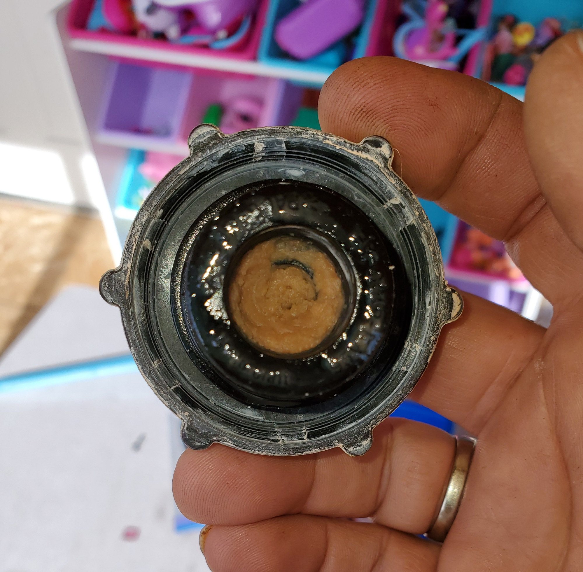 Is the goo being created - in other words, have you cleaned the cap and more goo is generated? It is worth checking whether there is a current problem, or whether it is merely a left-over from a previous (and perhaps now resolved) event.