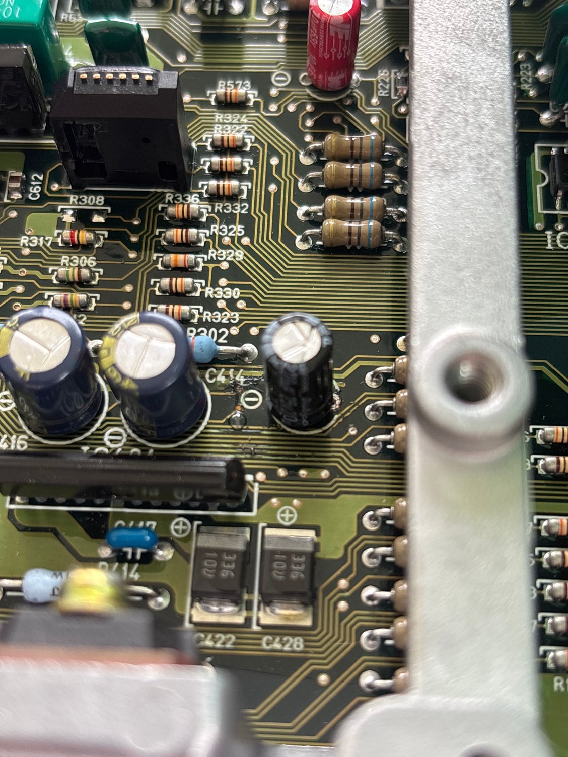 There is also one cap under the daughter board (four screws on the top). It's worth checking in case it's been missed.