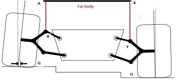 It's not the ideal image and I don't have any drawing tools on this laptop, but below A & X are the upper shock mount locations on the body and B & Y are the lower shock bushes attached to the control arms. The distances A-B and X-Y are the combination of spring length & upper shock mounts.