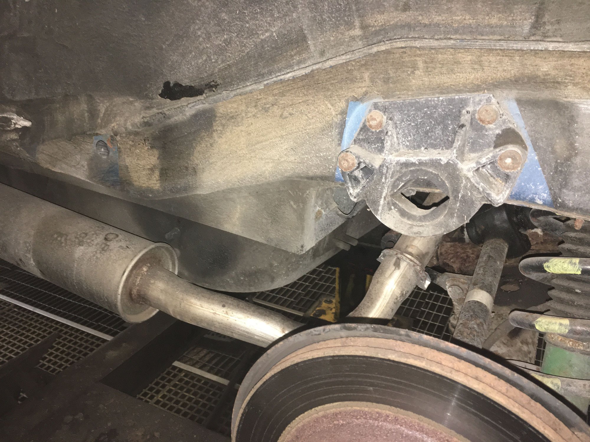 You could drill a small hole half way between the brake in the front/back sill from under the sill and plug it after, about 300/400mm from back wheel..
