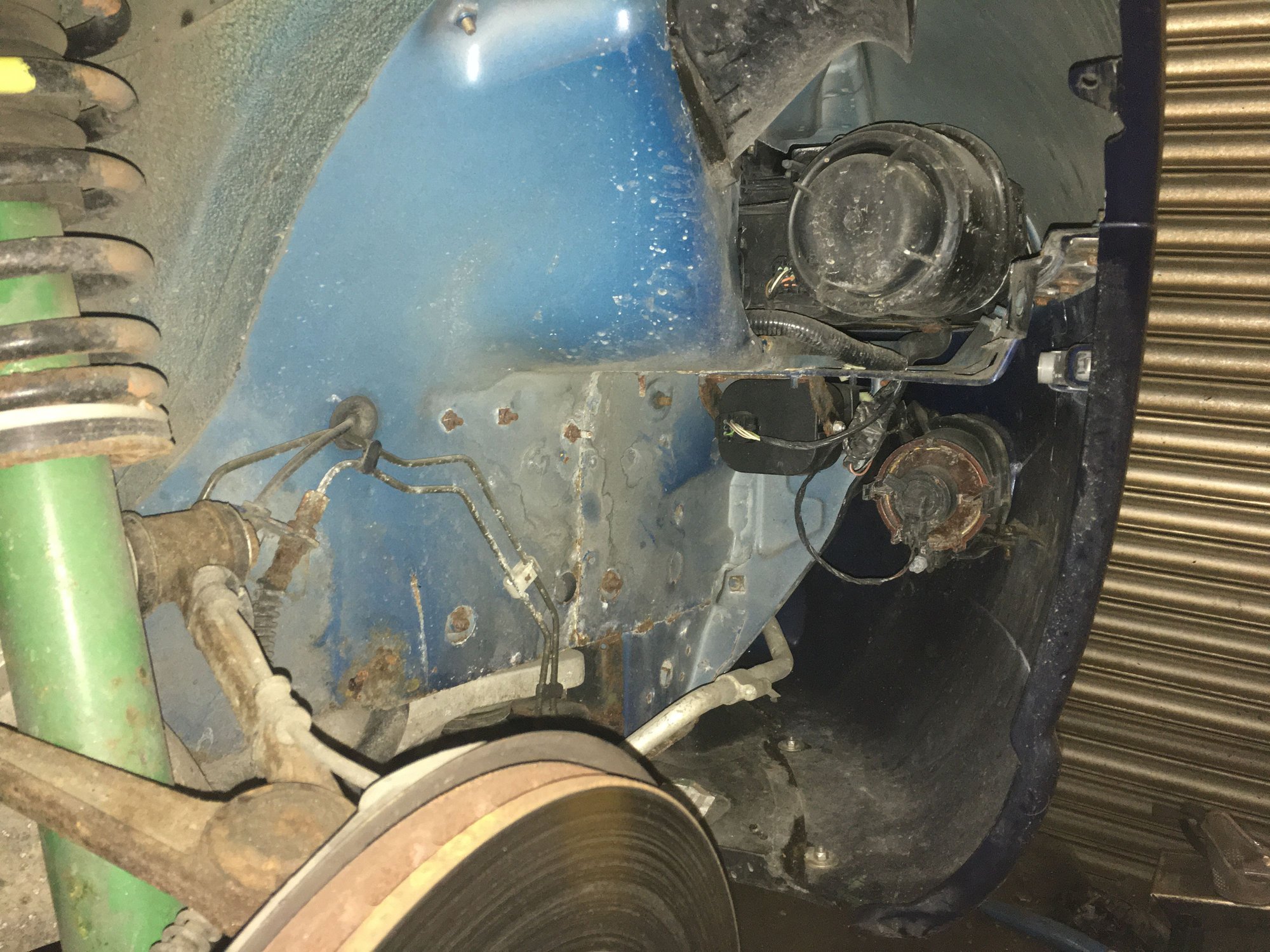 Under the door you can see a brake line, this is where the extra inner sill starts and continues back to the rear wheel.
