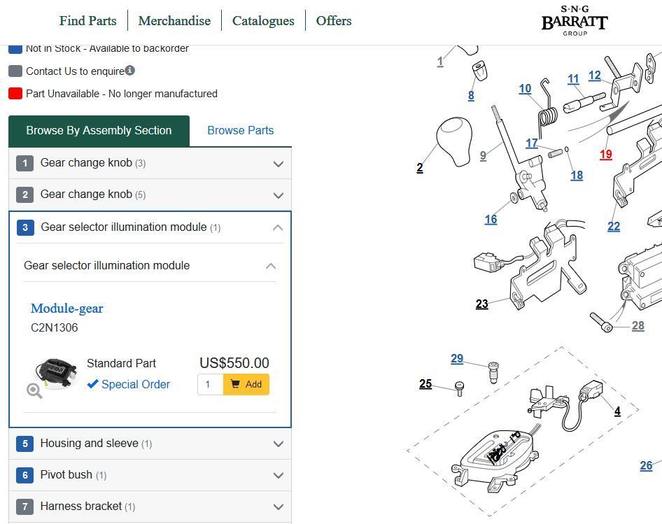 Jaguar Classic Parts never has its pages indexed by Google but the part seems to be available here, https://parts.jaguarlandroverclassic...on-module.html. Different part number than above but if you look at the parts diagram I think it's just because it includes the connector listed as #4. Very good price relative, I may buy one. I bought a nice one on eBay for about $100 but the screw holes were stripped so I just removed the face and put it on mine. The plastic on the bottom is prone to breaking but I just used some JB Kwikweld for plastics and it worked out fine. The one I bought had white back lighting for gears even when not selected, which mine does not have.