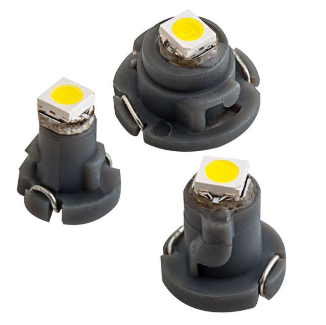 I have already installed the T-10 and T-5 LED bulbs. They are bright and beautiful. When that work! One or two of them will quit for a while now and then. I have had the dash apart twice and it is hard to identify where the contact problem is. There are two contact points bulb to socket and two more socket to board. Therefore, if I could get then bulbs I pictured - bulb and socket in one piece - I would eliminate two of the four contact points.