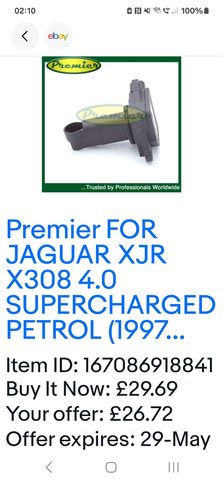 Note: the 4.0 L XKR’s have a unique MAF that is only shared with the 4.0 L XJR’s. The inexpensive aftermarket MAF’s will not work correctly on your car, nor will the MAF’s for the XK-8’s. A Jaguar part will the correct part number on it is your only option .