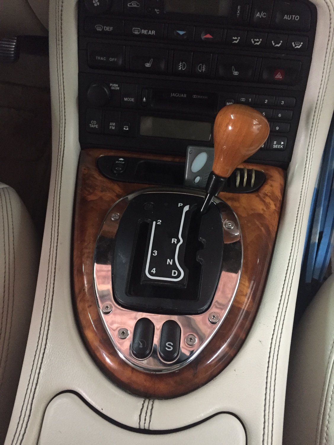 …..But I have a need for things to work and look right. As you can see the trim on the lever that releases the driver's seat back to tilt forward has broken. I can not seem to find a replacement. A wrecking yard is glad to sell me an entire seat however. Anyone know a source for such a minor part? And it appears that once I hand it would be easy for me to install. the other issue is the "S" button on the center council …. The button will not lock in the down position anymore which indicates it is severely worn and needs replacement. Question: Where does one find that part and maybe a DYI guide for replacement. I am not a mechanic and I know a trip to him and I will begin payment of his daughter's sophomore year at the university. I believe I've paid a good share of the freshman year. I could just put a piece of black tape on it, but that's just not cool. Any help will be appreciated. The 1999 XK8 now has 109,400 miles, a but up from the 84,000 when I got it four years ago. Just a few days ago we completed our 1,200 mile trip from the Seattle area to Palm Springs. the car likes it here.