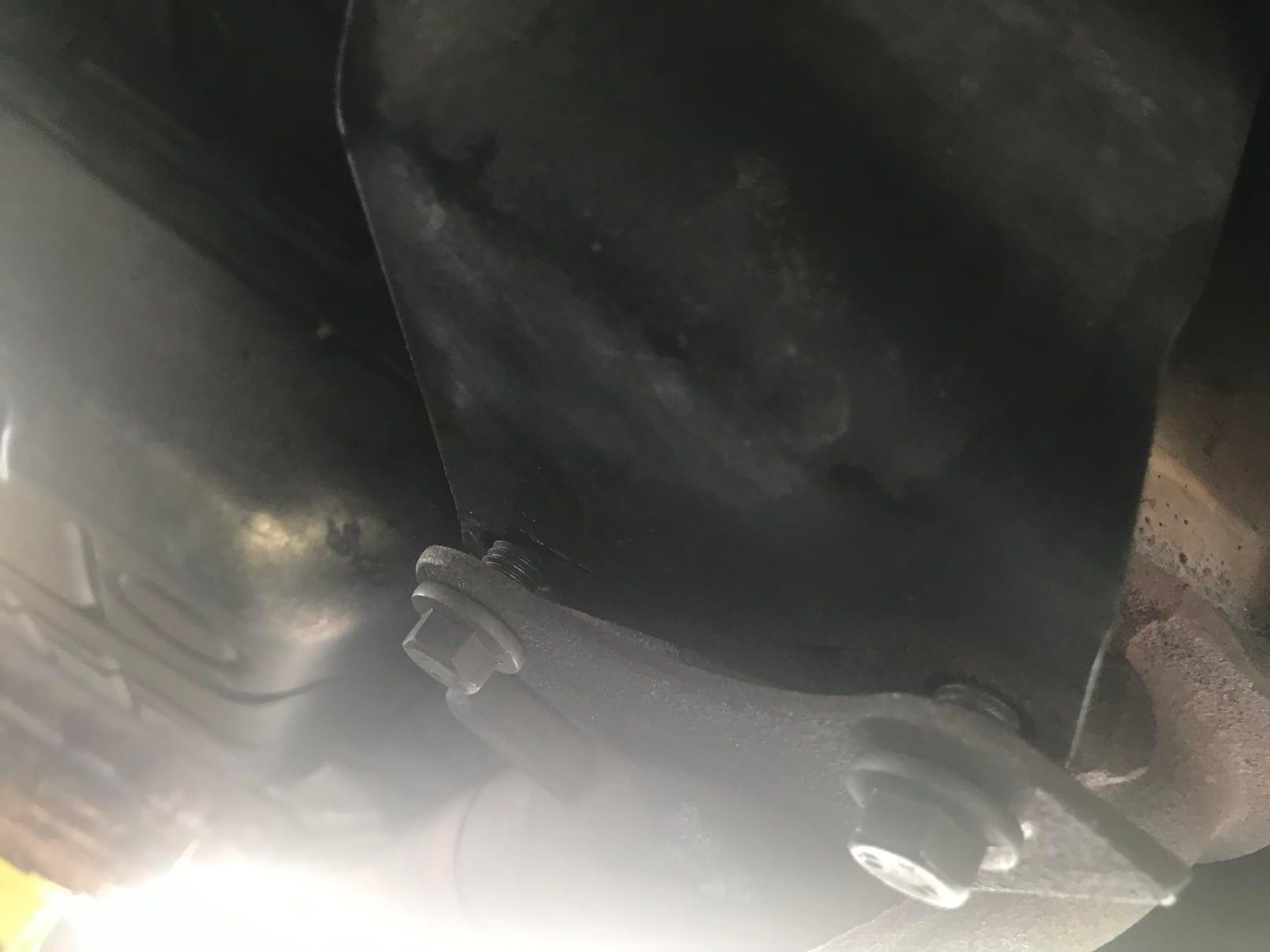 9. using new exhaust gaskets, place converters back into position using 2 bolts each at bottom support, do not tighten those 2 bolts, leave a gap between converters and bracket to give you some play when mounting the mufflers