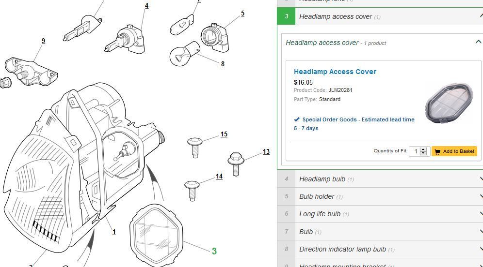 The six sided hex shape cover on the rear of the lamp is JLM20281. The left and right are the same.