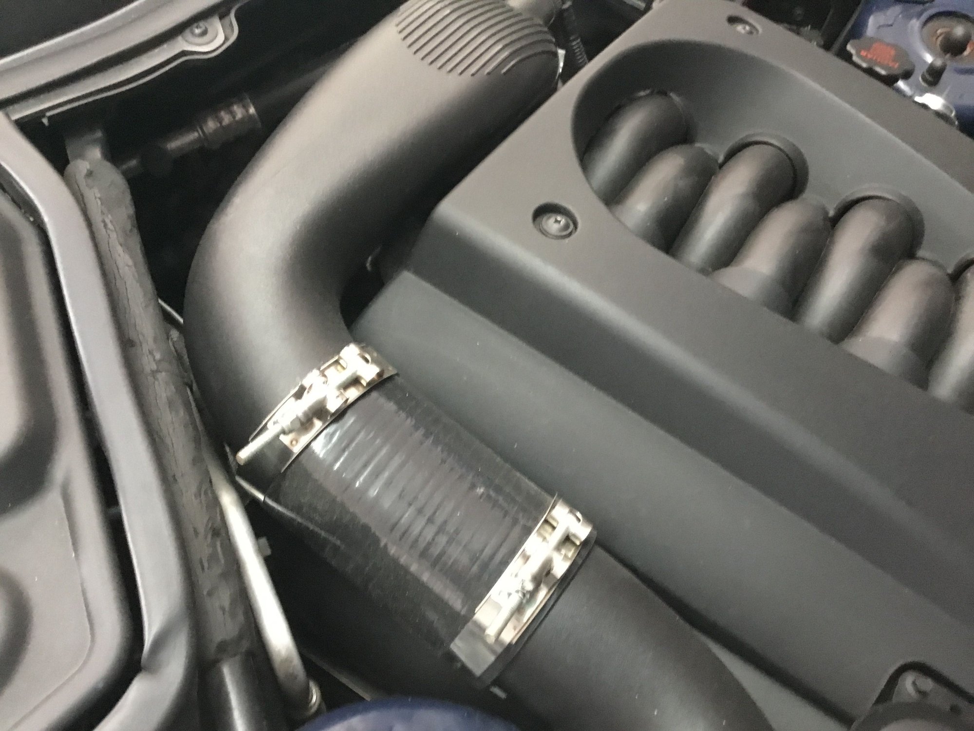As Don B mentioned above, check the accordion section in your air intake duct. It is best to completely remove the intake duct and flex it in your hands while looking closely at the accordion section folds on all sides. On my wife's 2006 XK8, I had to replace that intake duct with a new one in September 2012 due to cracks in the accordion section. The new duct had cracked again by April 2019 and rather than buying yet another lousy plastic duct that would crack again, I replaced it with the Mina Gallery aluminum tube duct kit. That permanently solves the issue and I highly recommend it....