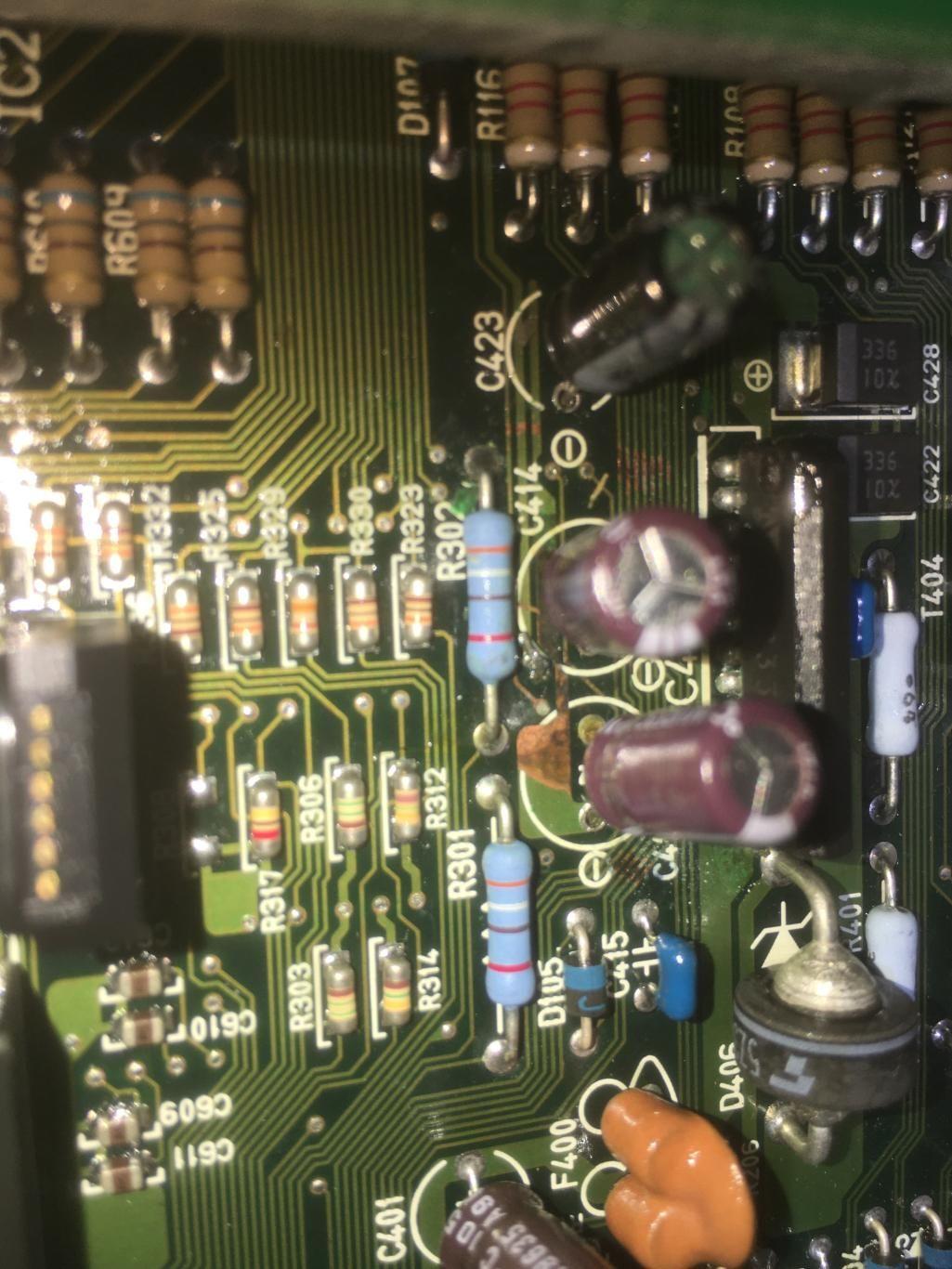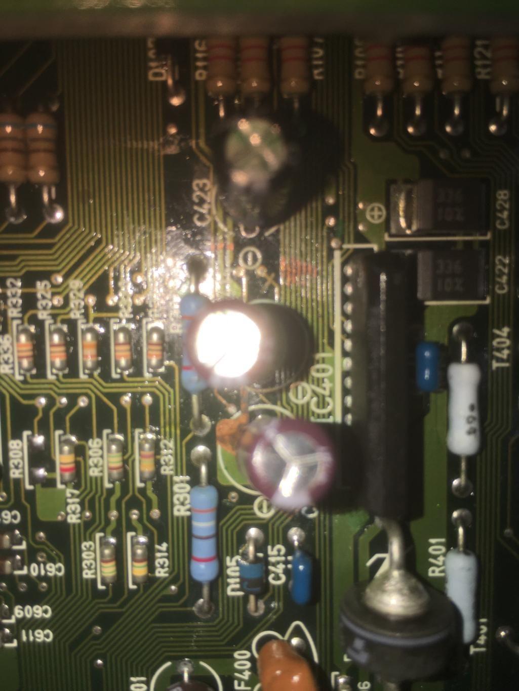 Someone has been in there previously (C423 has been replaced), and the exposed tracks are likely the result of a previous clean up of leaked electrolyte.