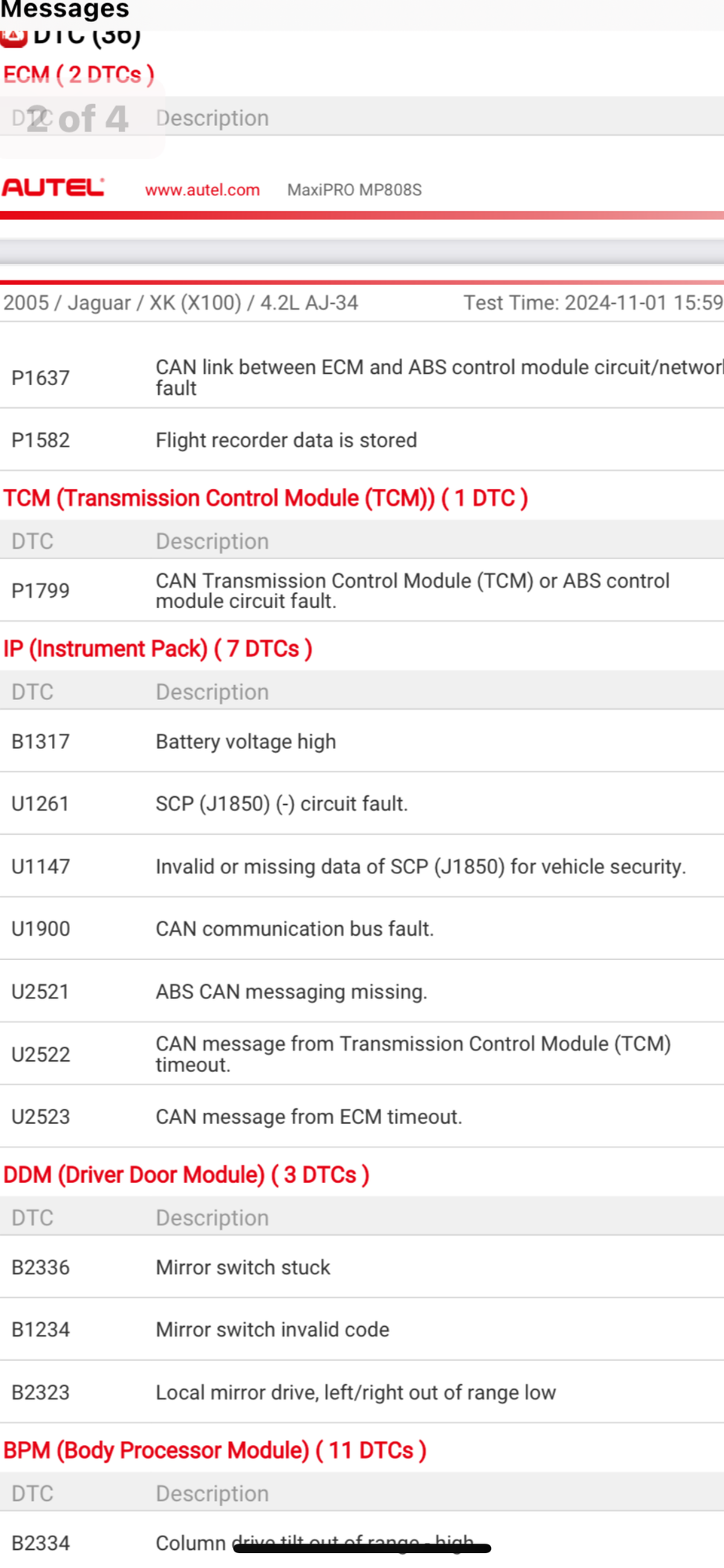 these are the error codes that came up for my 2005 XK84.2