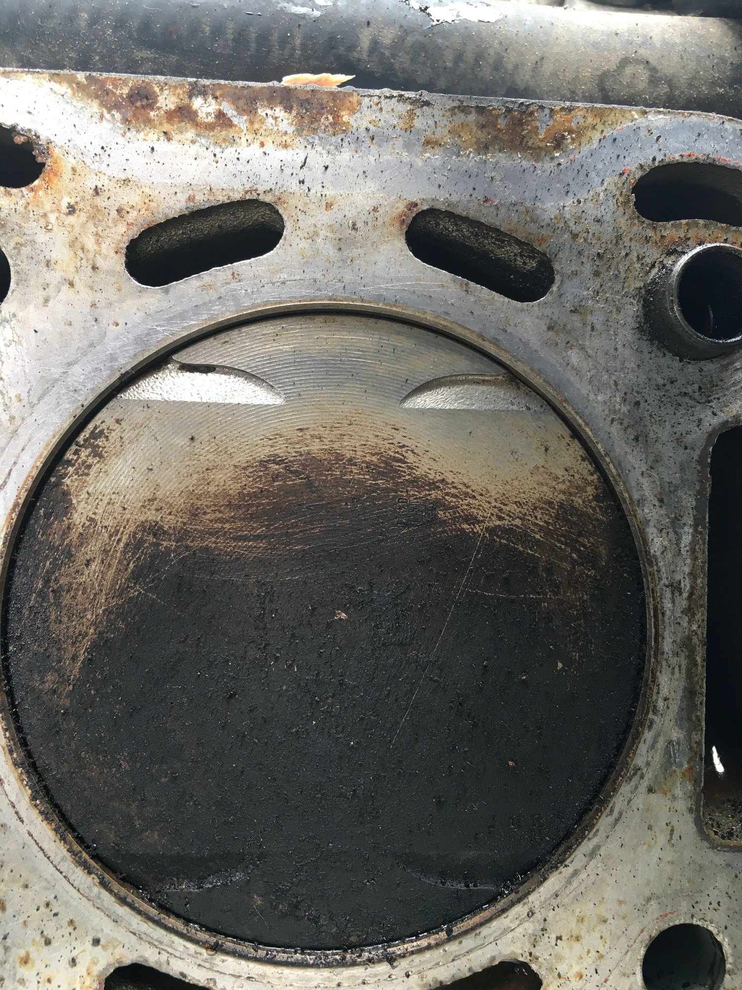 OK, so not ever seeing one like that and then seeing all were the same, I stand corrected and clean them up and don't over do it near the edges of the piston. I know, sounds crazy, just the way I learned it from the old guys in England when we did , I believe it was called decoke, been a while (60 years)