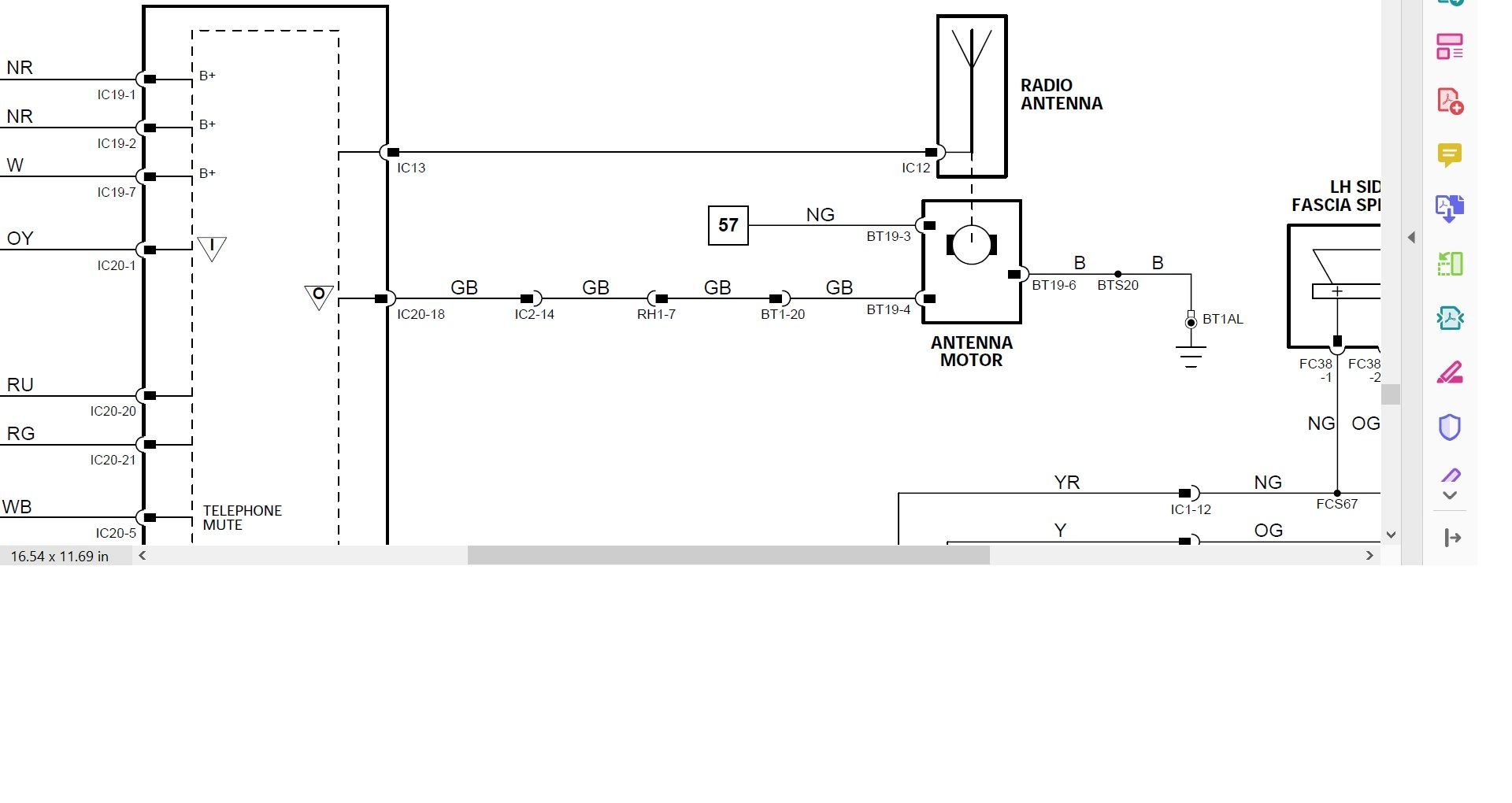 Lead GB provides a +12v signal (IC20-18) to the motor unit only when the head unit is on. Lead NG (brown-green) provides an always on +12v signal (Boxed in 57) to the motor unit.