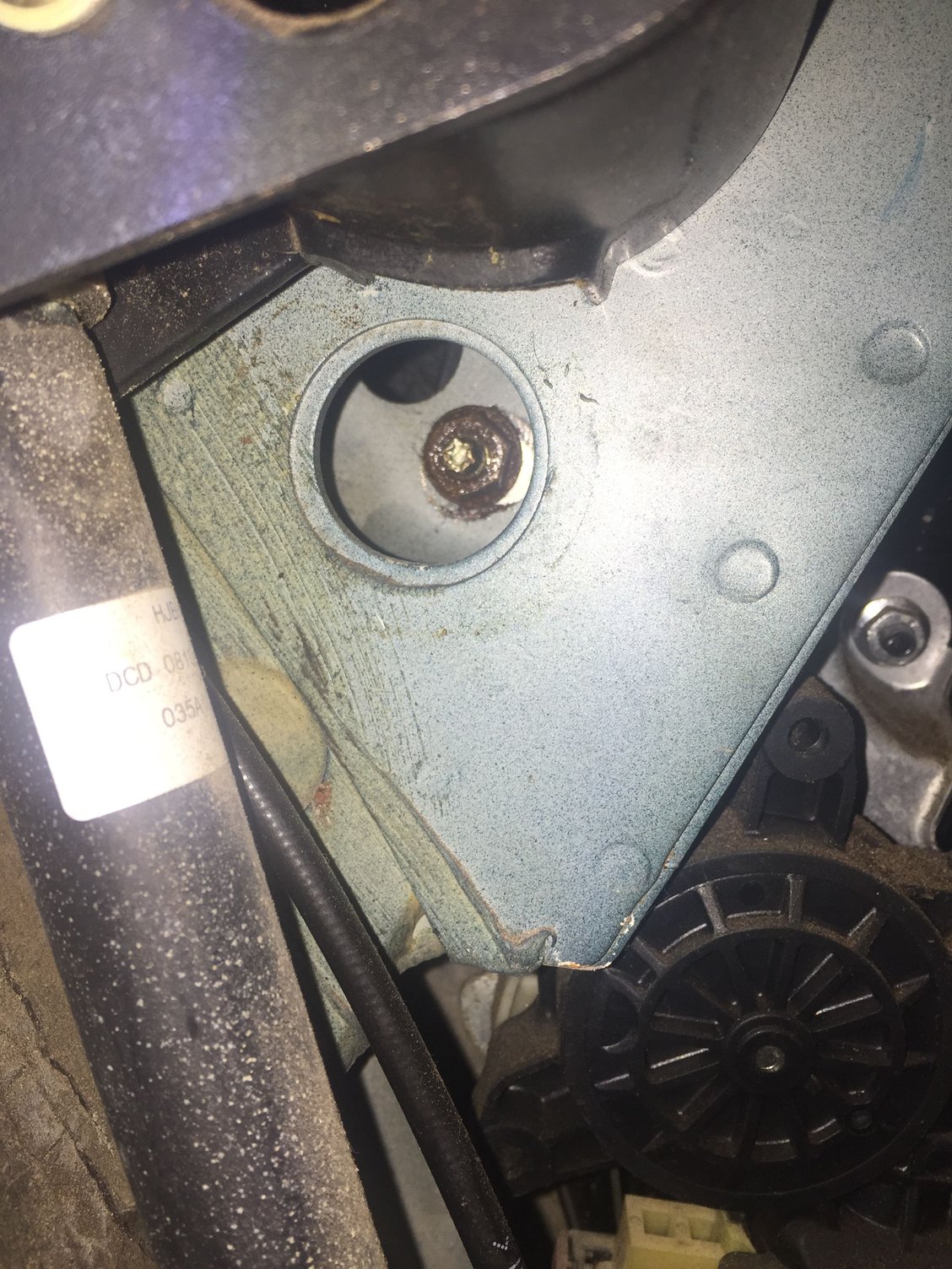 The 3 bolts are in a triangular arrangement around the perimeter of the regulator. See pics below. The bolt at the bottom was my problem when I had the same loose window. You can see the marks where things had moved. I put some locktight on the threads when I bolted it back in.