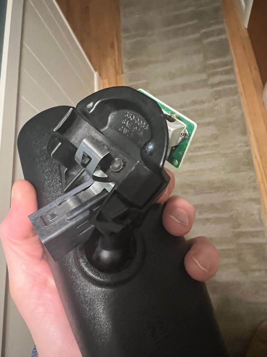 It looks like if you were to pull just the mirror body off, there's a pretty round semi standard ball there I could use. It's looking like I'd have to pry open the body though - no external fasteners or clips I can see. Or maybe it just pulls off hard, but seems unlikely.