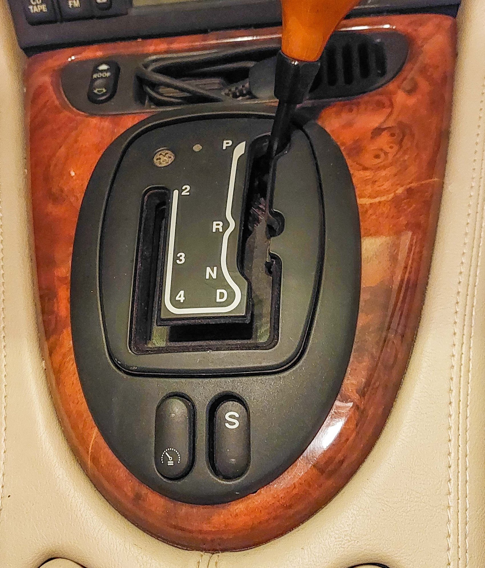 Hello. I have a 2001 XK-R Convertible with a Sport Mode switch that has become dislodged from the cowling. It still works but I'm not sure if the switch is actually broken (plastic lugs?) or just come lose. What I don't know is how to disassemble this area to get at it without breaking or snapping some piece of plastic. I have no idea what the structure looks like underneath.