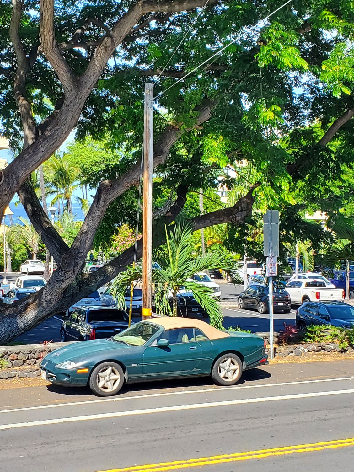 On holiday on the Big Island in Hawaii... spotted this faithful XK8 steed on Ali'i Drive just south of Kailua town. Kudos to the brave owner! British Racing Green in extreme environment.