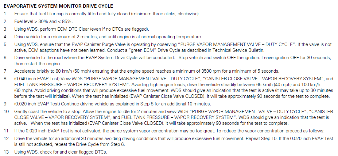 This is the document I’ve found regarding the “drive cycle procedures”. It appears to list “cycles” for several different component issues. Which, if any, of these "procedures" does anyone suggest to solve this problem?