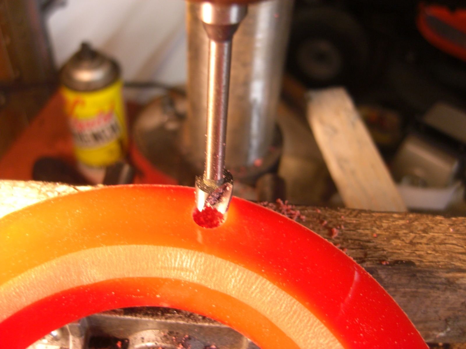 After drilling a small cannel in the top lip and cutting the excess off with a carpet knife a really nice fit into the bottom hole. A little off center but that should allow the drain hole to be open. Still have to counter sink the 1 1/4 inch hole for the washer crown and we will see how it fits up and if the crush factory is not too much.