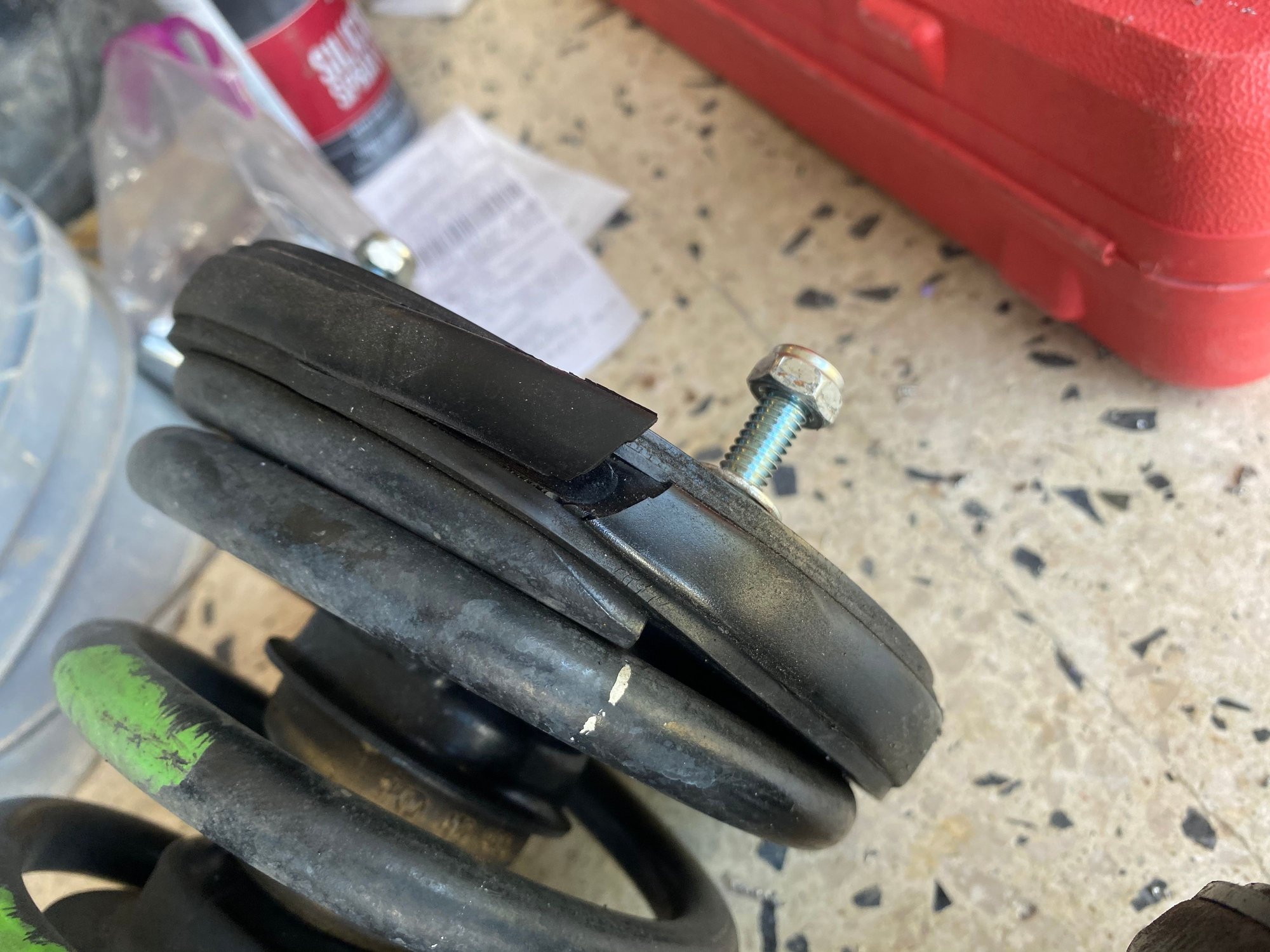 Tomorrow I will remove the shock absorber, shock mount, and spring. Should take me about 15 minutes, especially considering I already have the upper control arm out. If the package arrives, then great, I will be having it all installed by then, if not, then I will regrease the anti-roll bar bushes, which are squeaking a lot. I'm still on the fence on if I want to go through the trouble of removing the lower control arm bushes and also installing a Zerk fitting or leave it as is for now. The lower bushes don't appear to be squeaking, and the lower ball joints are quite new.