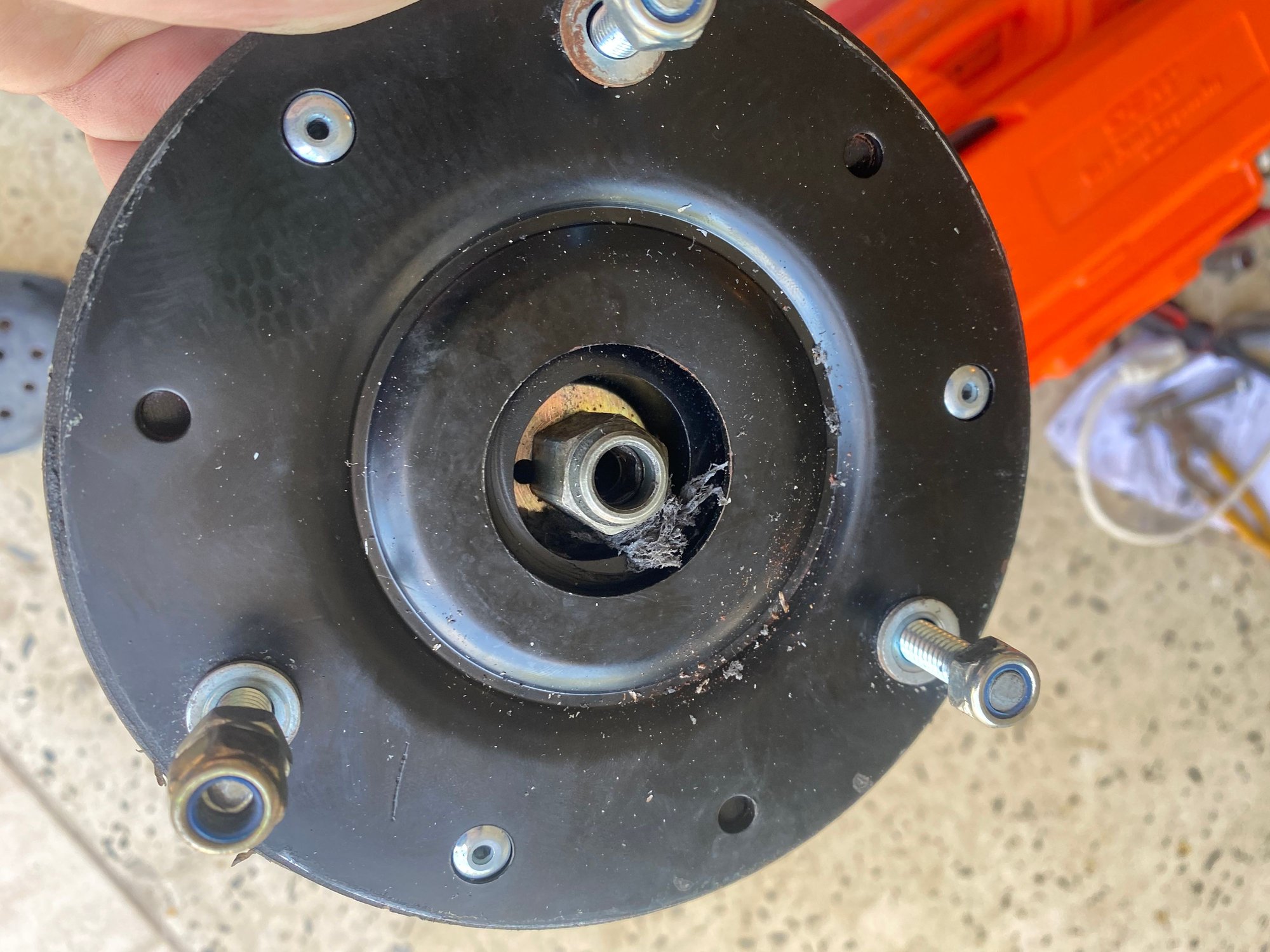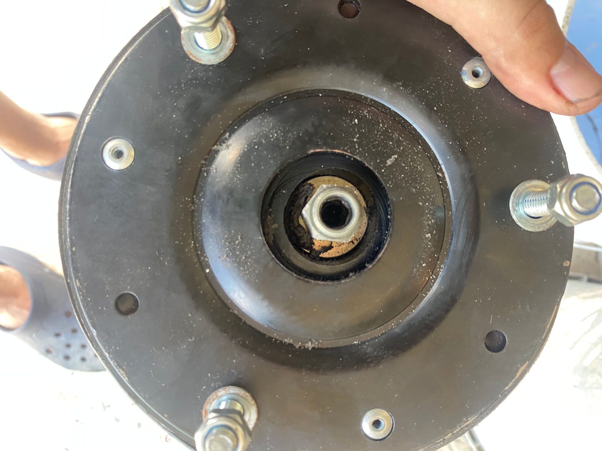 Shock nut is not centered and you can see signs of the bushes being shaved by the mount itself.