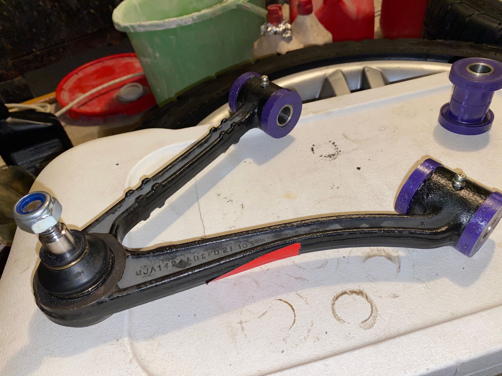 Also, I just learned that adding some Teflon tape to the anti-roll bar and the control arm bush sleeve can help eliminate squeaking.