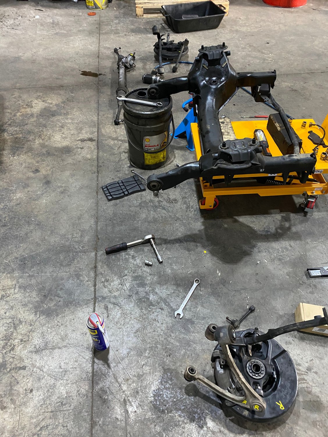was very tough to re-fit the new ones back in without making any more space.. too many obstacles.. thus decided to open a new job.. remove the subframe to make room.