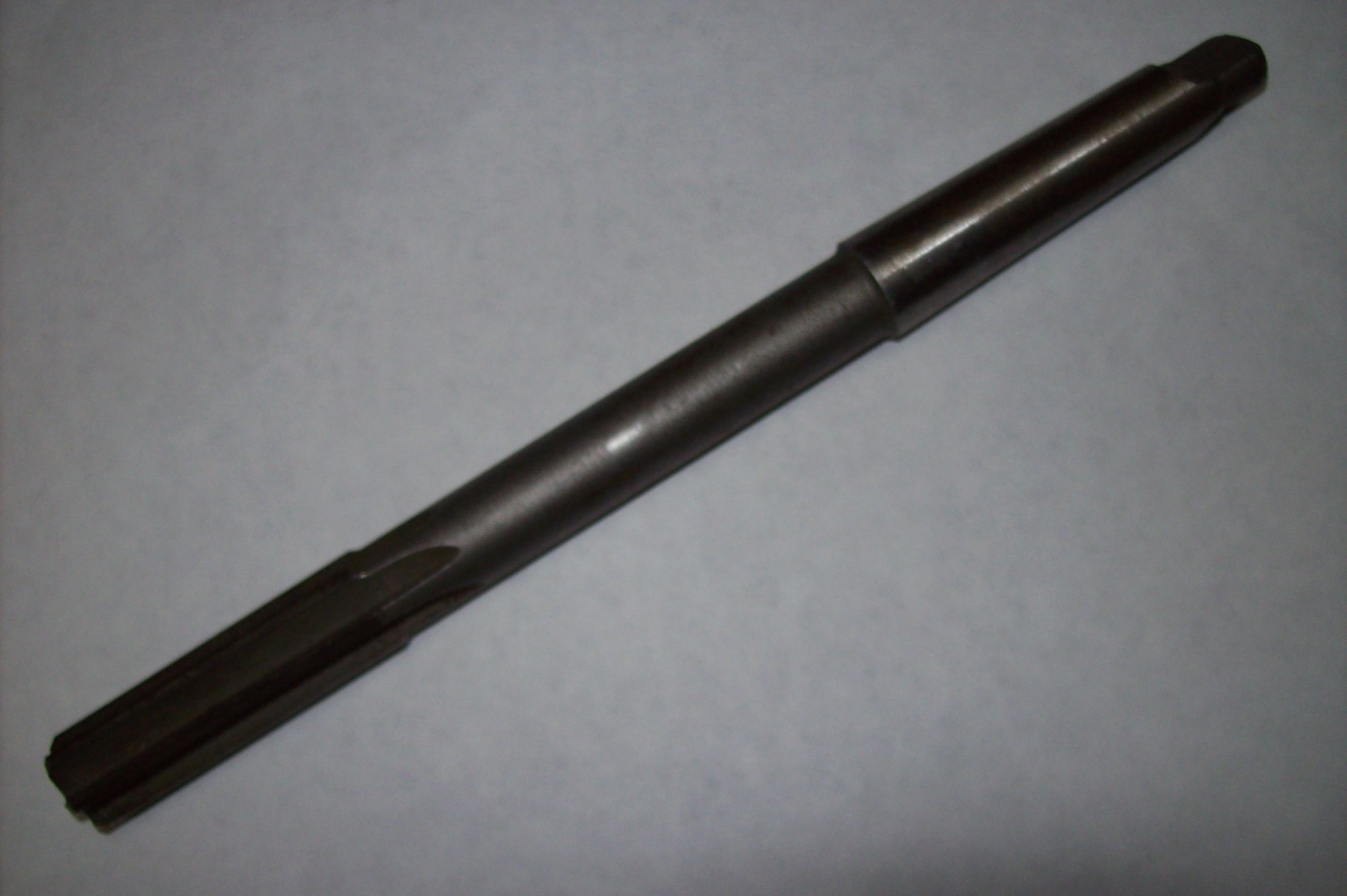 The fulcrum bolt measured 5/8” diameter, surprisingly. An 11/16” reamer was selected to create a “magic wand” to ream the “aluminium” crossbeam. 11/16" reamer with Morse taper