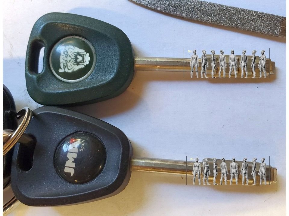 Green valet versus black ignition key: L-before, R-after Contour easily matched with small hand file