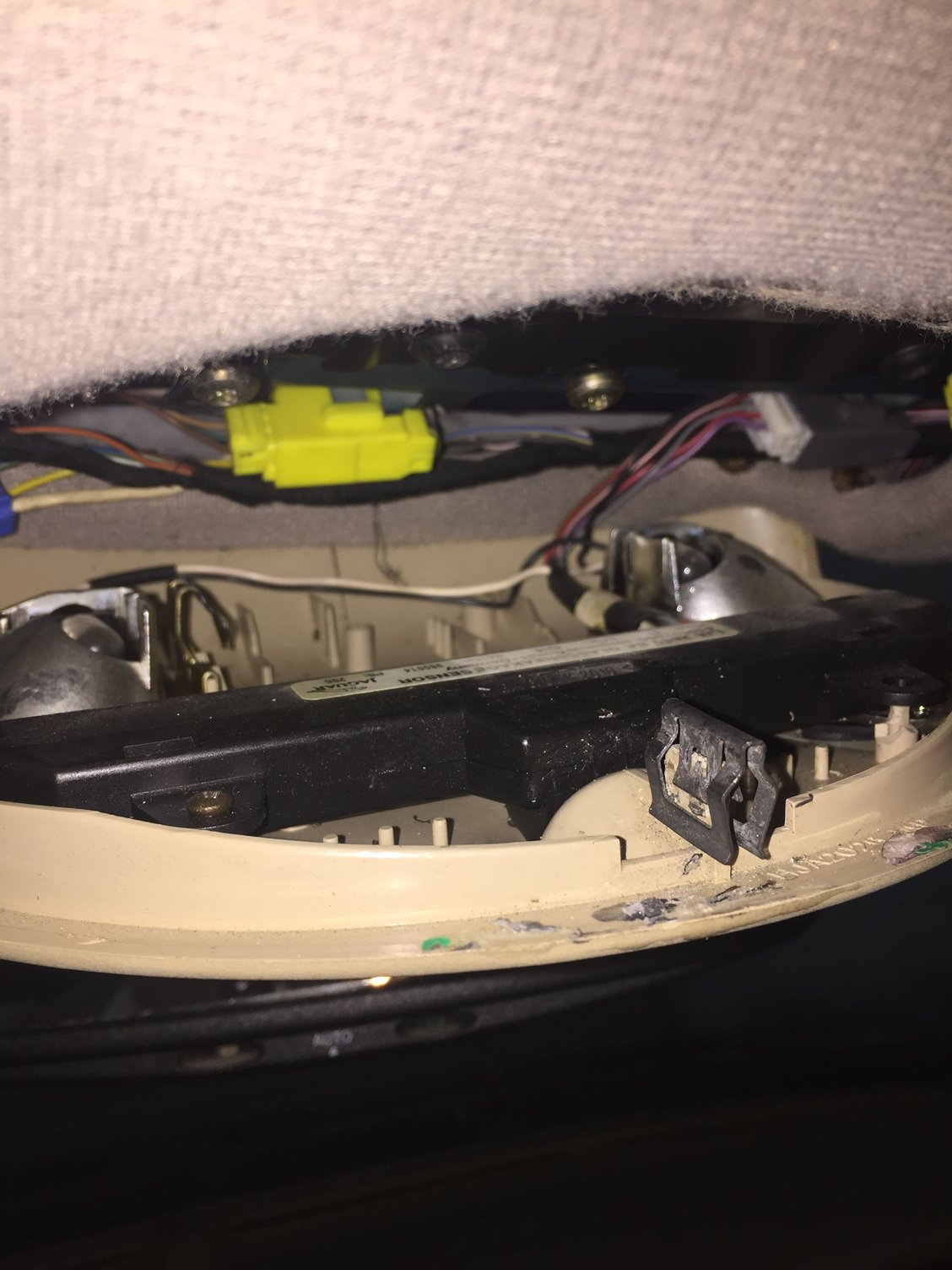So the previous owner had put a mastic “plug” on the rear of the unit onto the rear view mirror to hold up the back of the unit. Yikes!