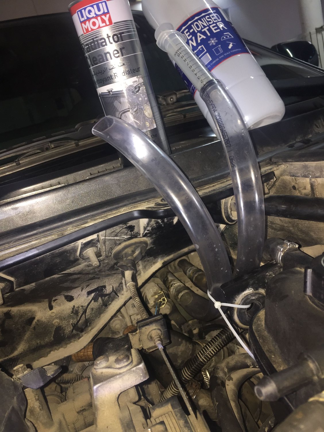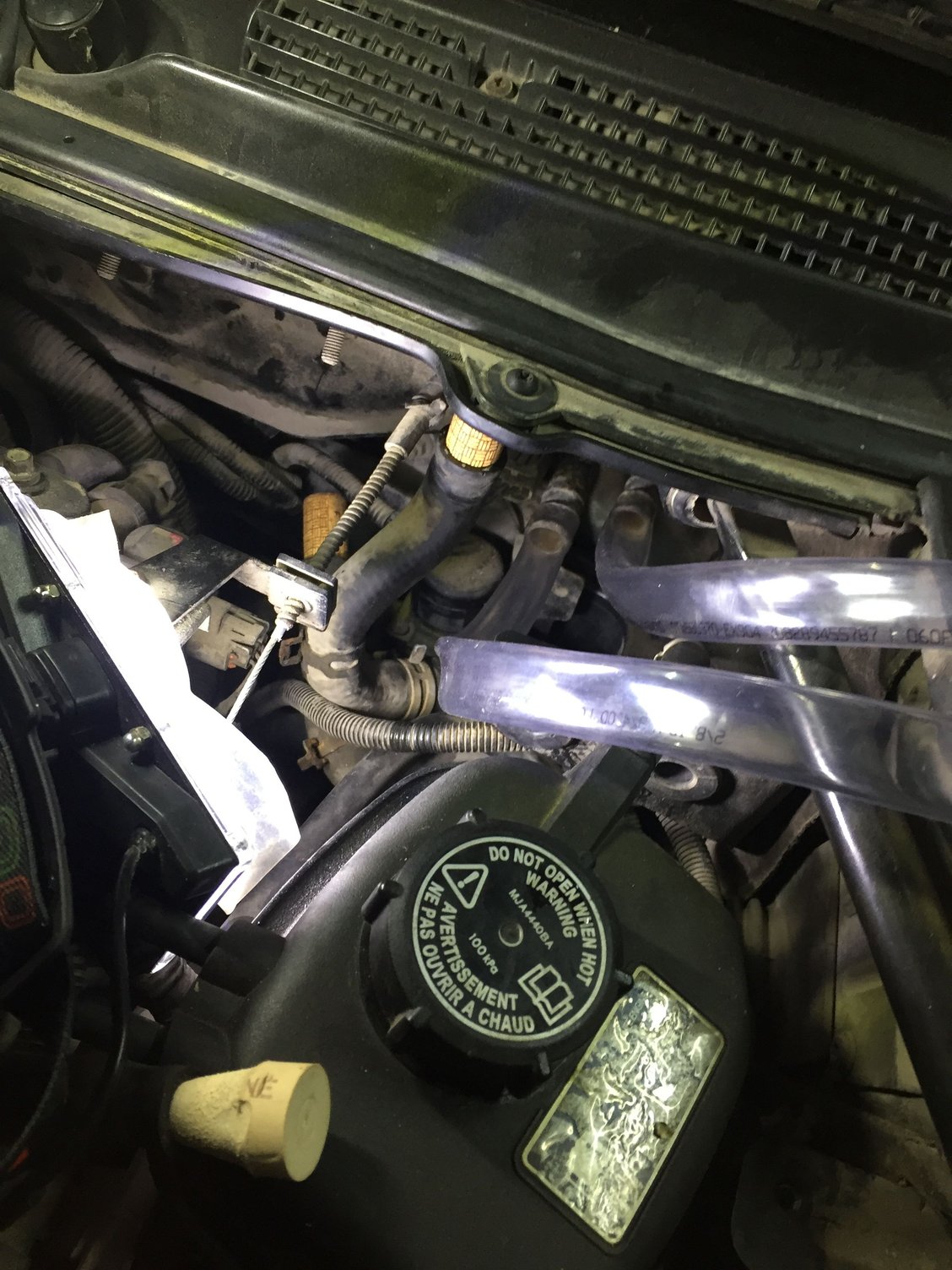 Made little plugs from wine corks, so not too messy. Recently got a box of coolant hose tools, so easy enough to remove the 2 hoses from the firewall.