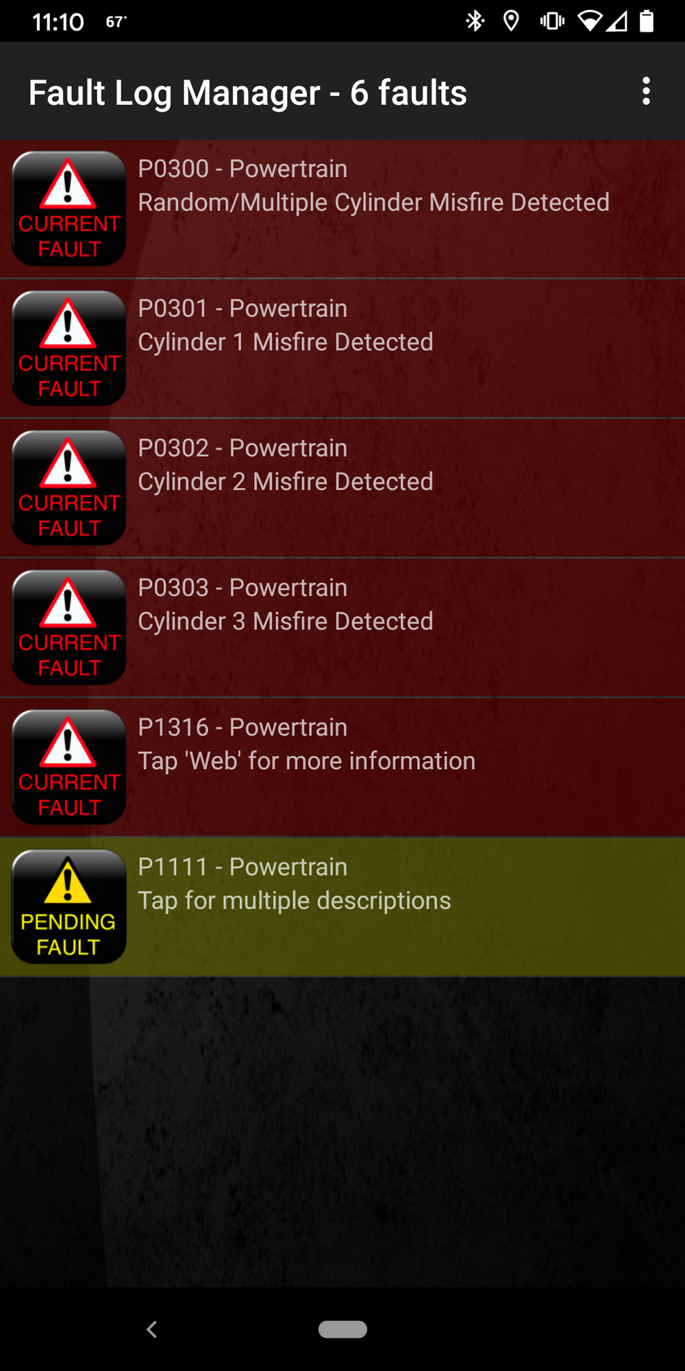 Recently I had noticed a misfire a few times when idling. I cleared the codes and they did not return. Neither has the misfire.