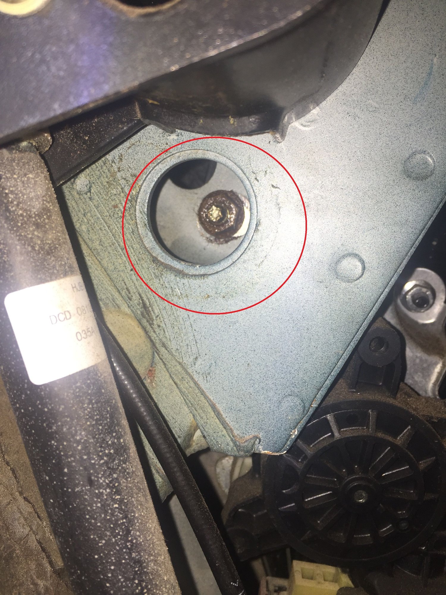 All this to access 3 nuts holding the window regulator in place. These 3 mounting points provide location and adjustment for the regulator and window.