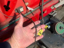Close up. Green with brown stripe, “L” shap d female spade connection.