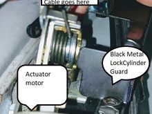 this yellow nylon part moves up and down when key turned, I geuss it is the lock cylinder rod. It is inside this black plastic part and I cant figure out what to do next.