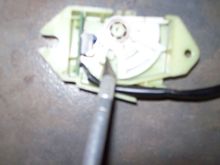 overextended ratchet, note closed gap but more importantly, the white stop tab is not resting against the notch to the right. Switches would indicate "brakes on" full time