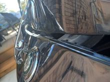 The result of removal of the Leaper, 3 holes and damage to the paintwork and a slight indent from someone who fancied the THING. Next is bonnet off and to the repairer. :)