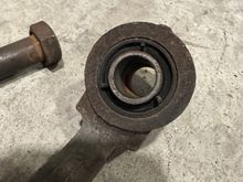 Pic of left side lower contol arm on a 2000 X308 at a local pull and pay yard this weekend. Shows bolt inserted from the rear, just ahead of the steering linkage.