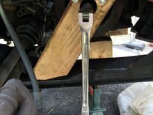 Here the tool I made from a piece of 2x4, I used a hole saw to cut a hole, I then drilled three small holes to put three bolts through, put it on the pulley, mark the subframe on other end of 2x4 then cut to the length and at the angle, tighten up the bolts to the sprockets, put the wrench through the hole and used all you mighty strength to turn the handle. It cost me a piece of scrap 2x4 and about $3 for the bolts