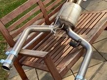 comparison of new and original DFP system. Front pipes on new one too long!