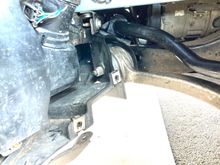 LHS front bolt is hard to access due to the pipe that runs directly above it. Fitted a 13mm 1/4 drive socket on the bolt then prized a small ratchet into the socket.