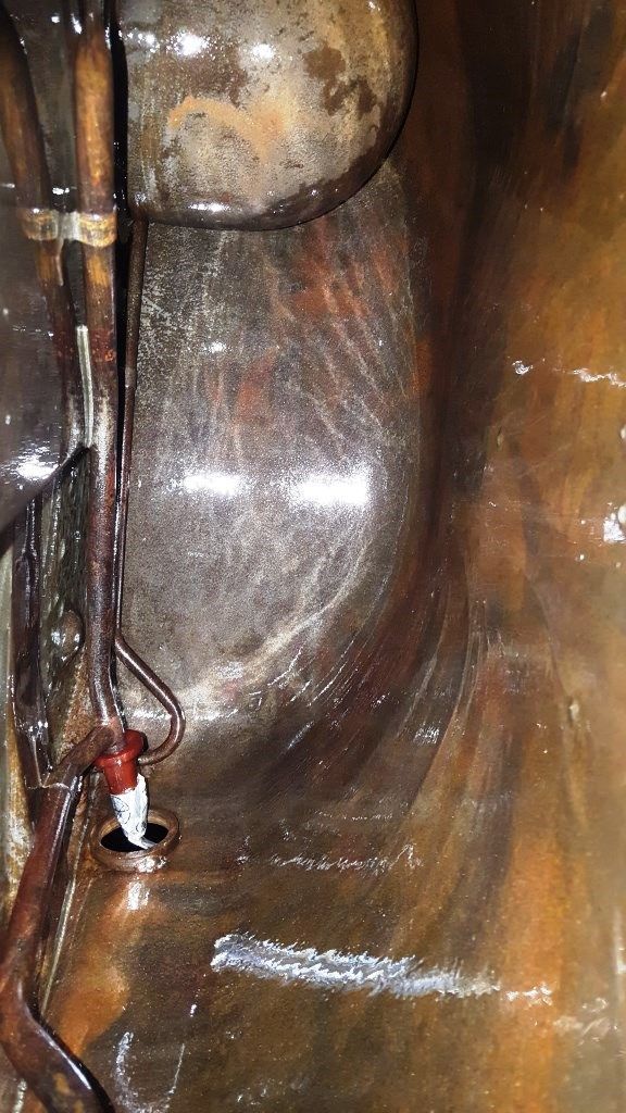 Shiny wet sealer appears to have covered everywhere. The filler neck "bubble" at the top was the hardest to get the sealer to coat.