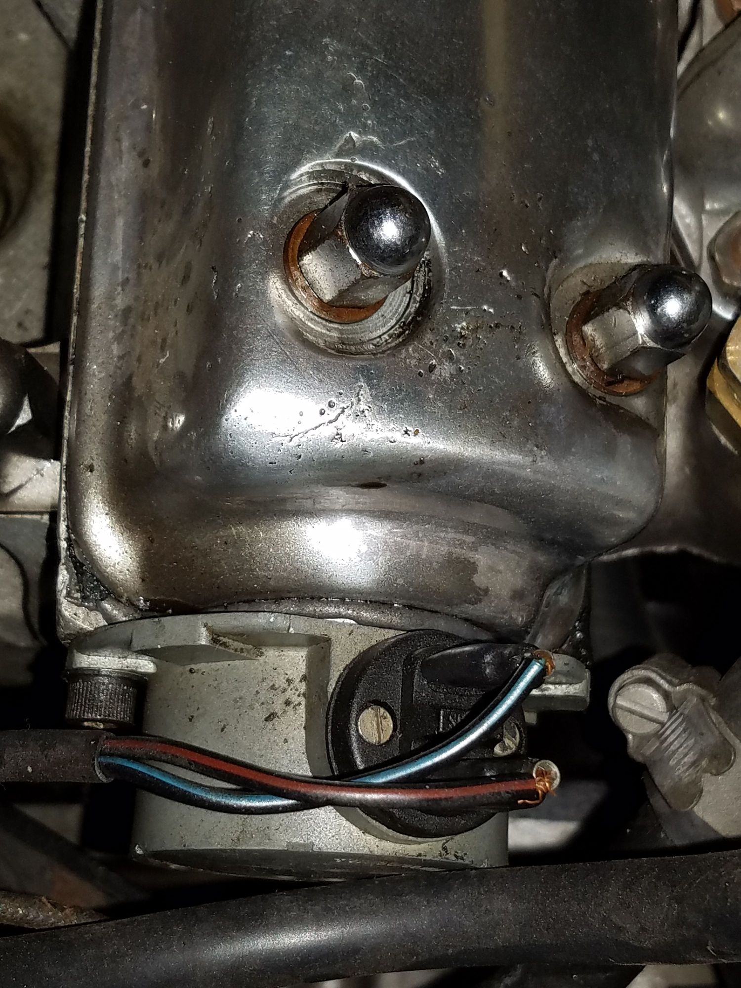 The tach generator is at the bottom of the pic, with 2 wires leading from it.