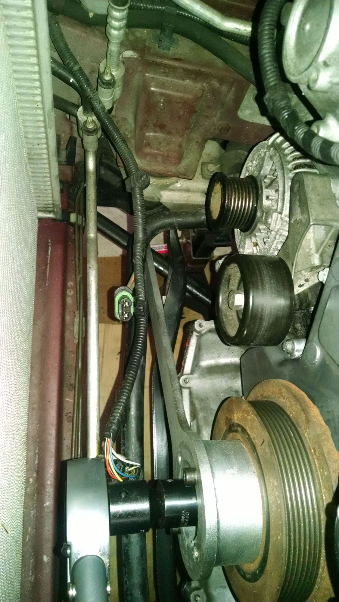The crankshaft locking tool goes behind, and under, the swaybar.