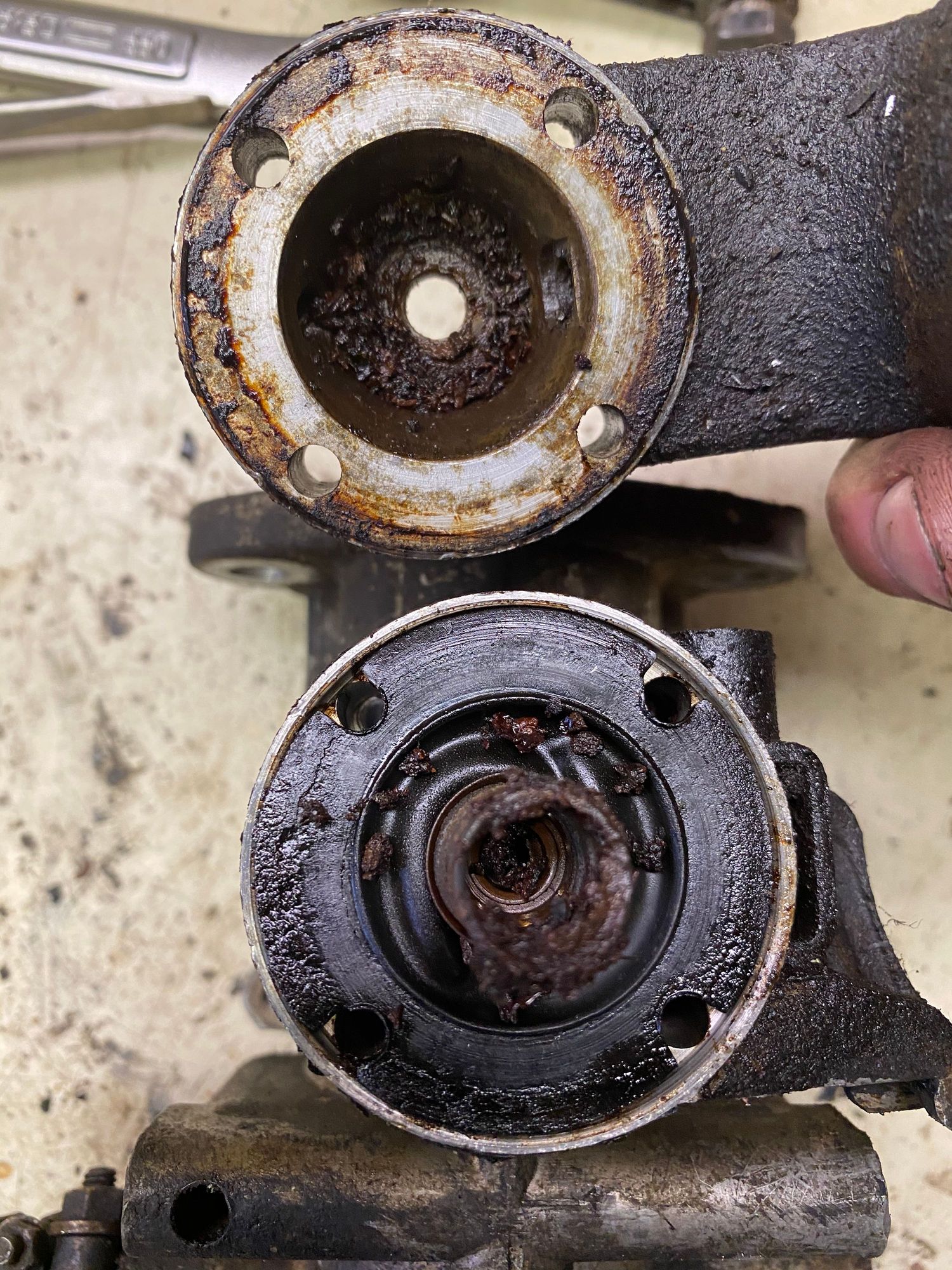 The front carb had these chunks in it and the spring on the diaphragm was rusted in half. Shocked that the car would run.