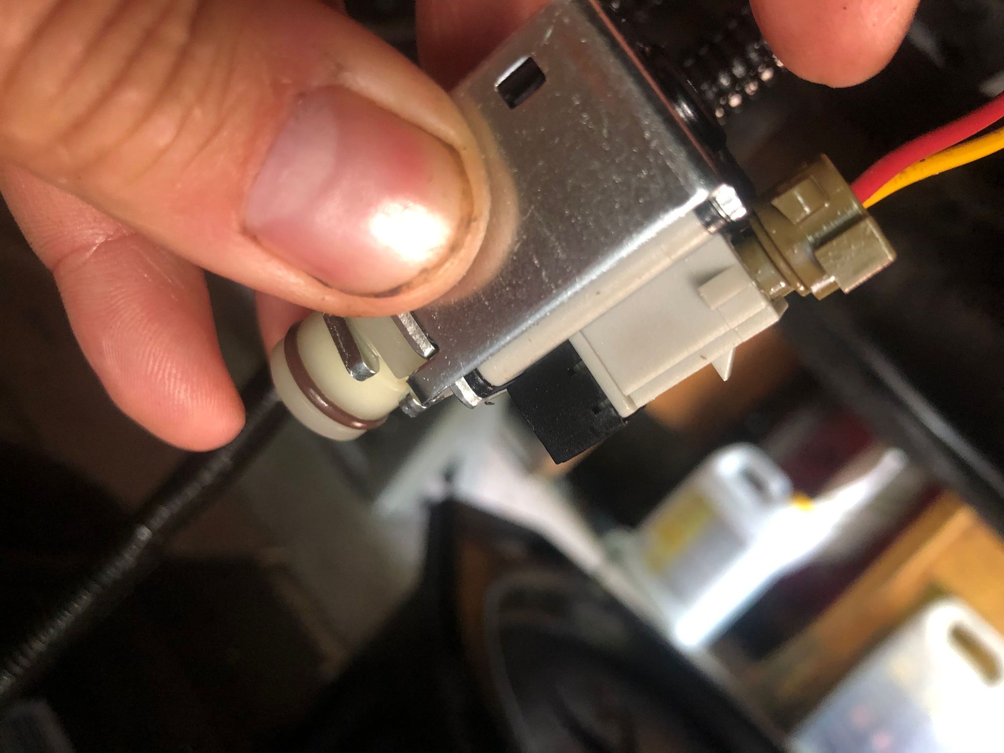 This connector needs to be ground flat on one side to fit the new solenoid