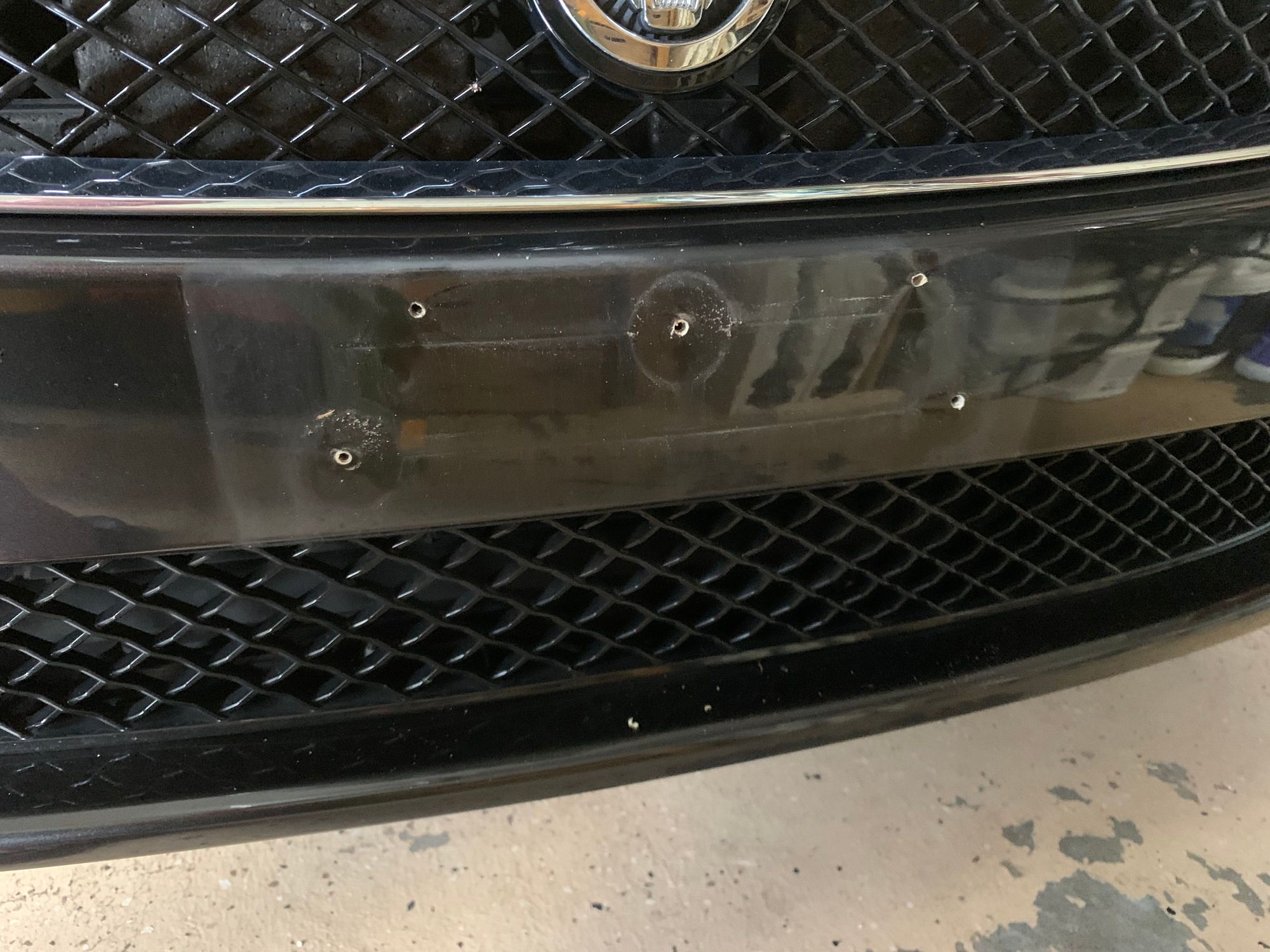 All the holes in the front bumper from the bracket - and too-long plate screws