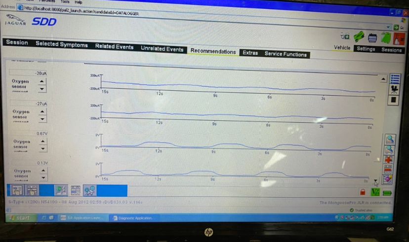 Signals from top to bottom 02 sensor one bank one current O2 sensor one bank two current O2 sensor to bank one volts 02 sensor to bank two volts