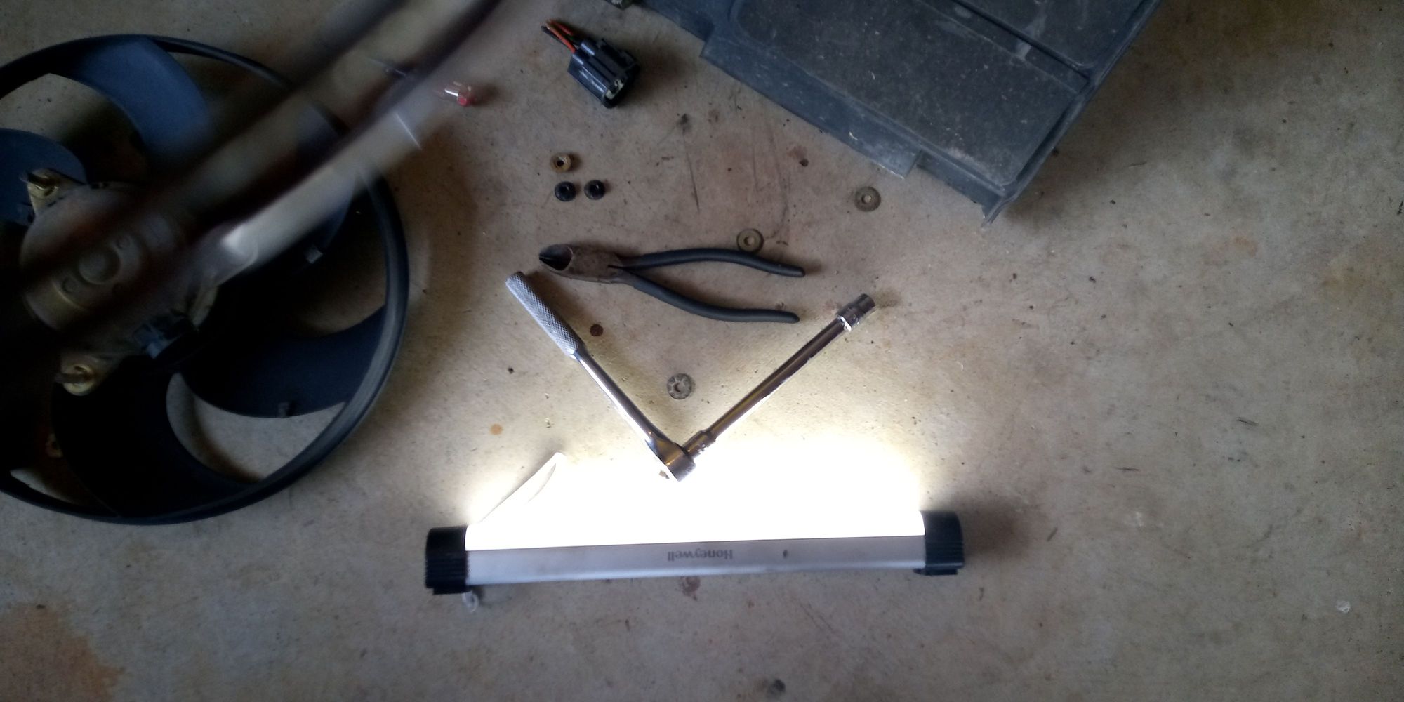 Light, 10mm socket and wire cutter for the zipties