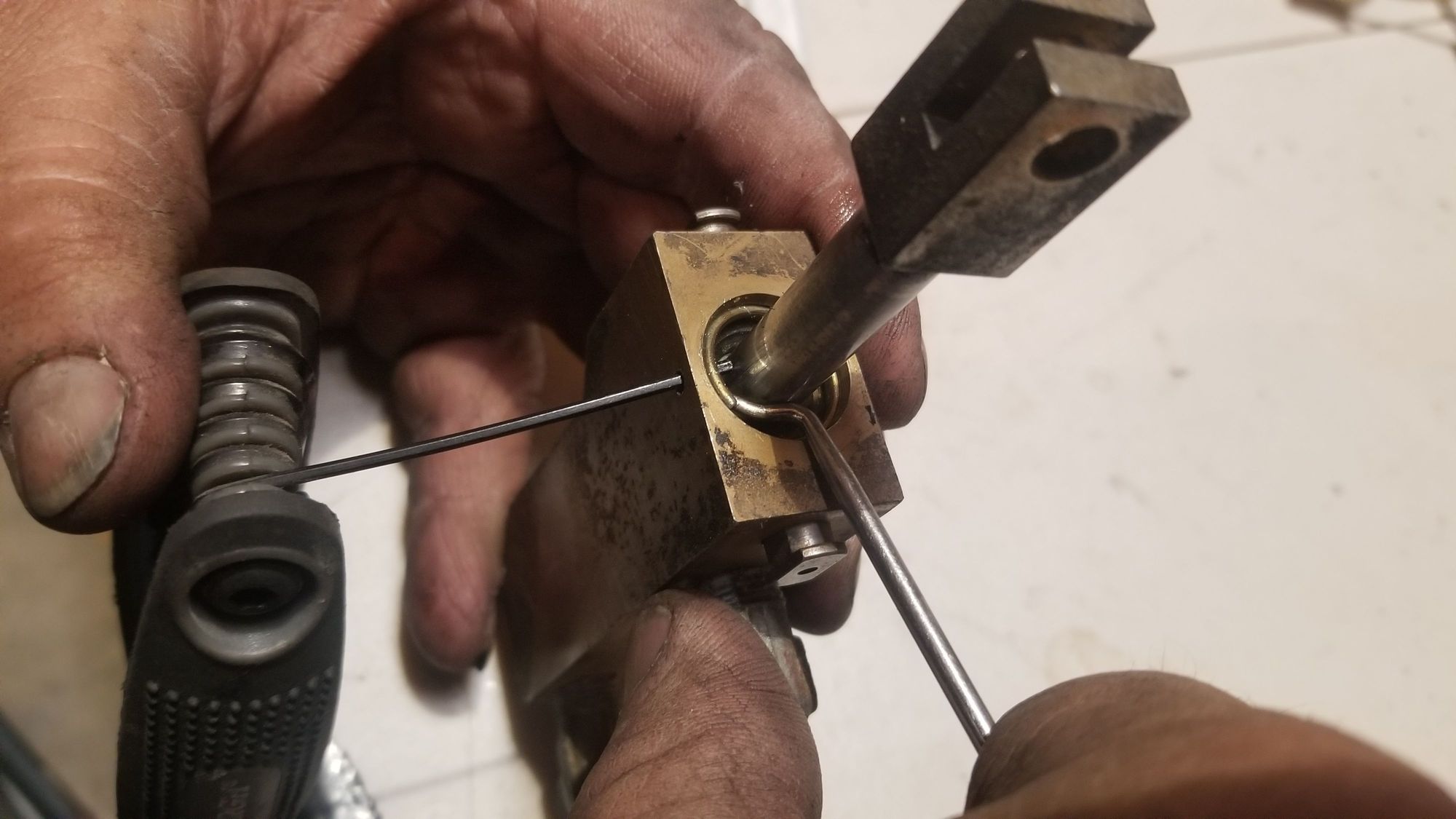 Here I used a small allen wrench and pushed in the hole. Then I was able to use a pic to remove the ring.
