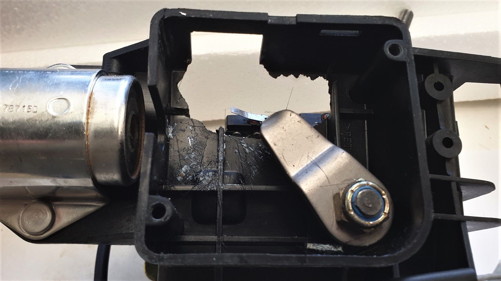 This pic shows gaping hole in wall of selector, with all the bits in following pic found lying inside once cover was removed.